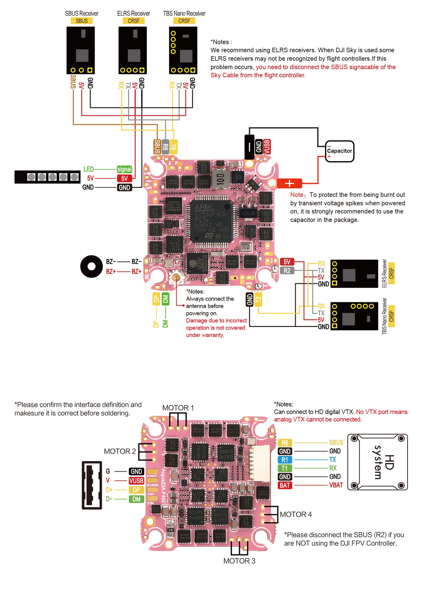 ARGUS 20A F405 ELRS is a lightweight AIO board combining flight controller, ESCs, and ELRS receiver. The board is suitable for smaller 2–3" drones powered by 3–4S LiPo batteries and equipped with digital video transmission. The board does not have a chip for analog OSD. There are pads on the board for connecting an external USB connector.