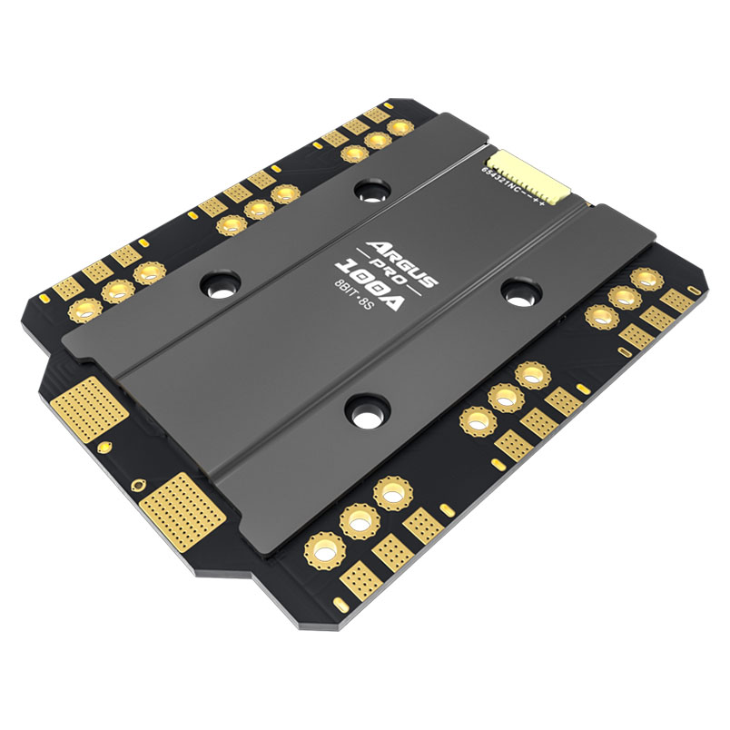 Axisflying Argus Pro 100A is a unique ESC containing 6 regulators on one board. The regulators can handle current up to 100A and power supply in the range of 2-8S Lipo, making them suitable for building larger 10-15" hexacopters.
