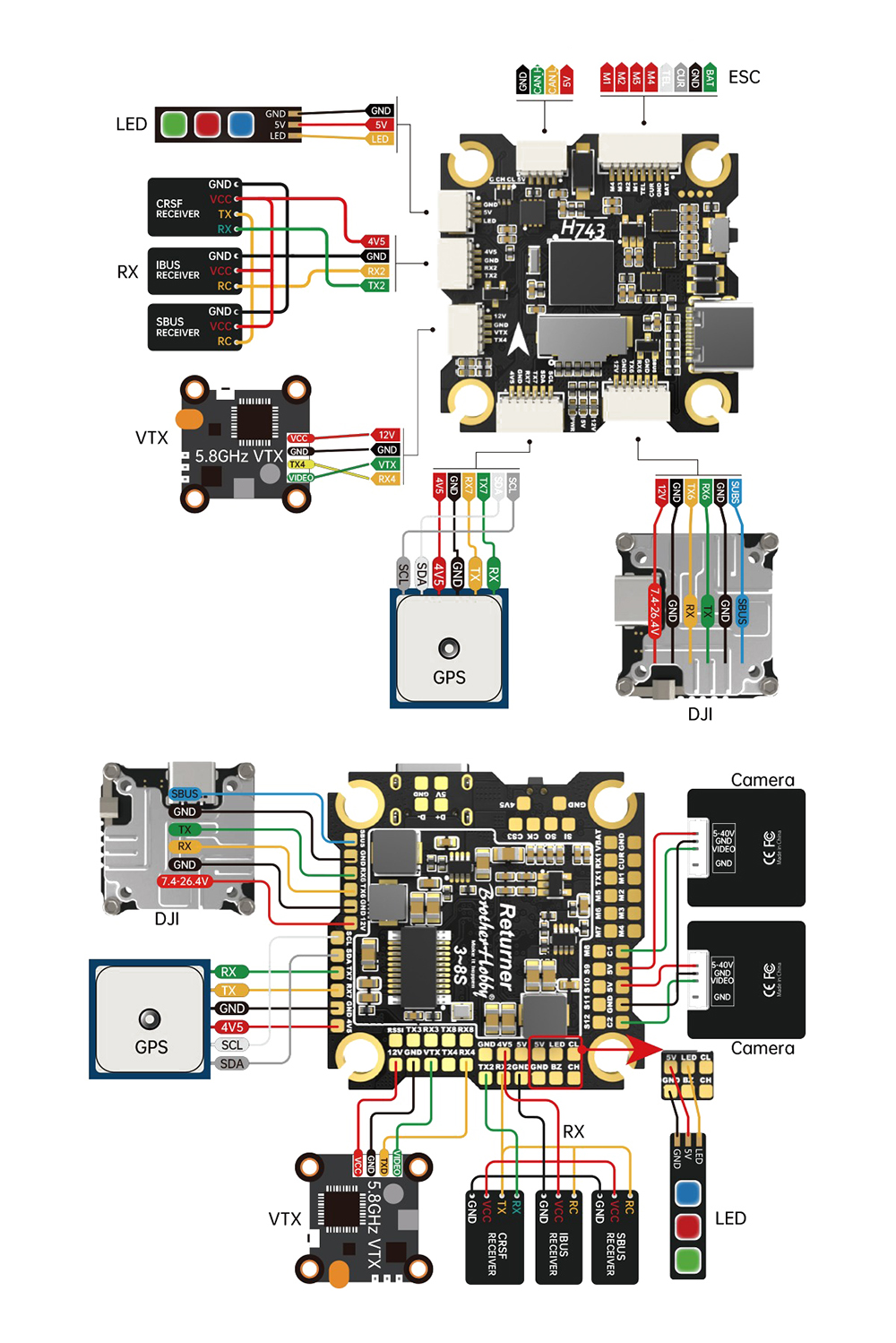 BrotherHobby Returner H743 is a powerful flight controller suitable for freestyle and long-range drones powered by 3–8S LiPo batteries using Betaflight or ArduPilot firmware.
