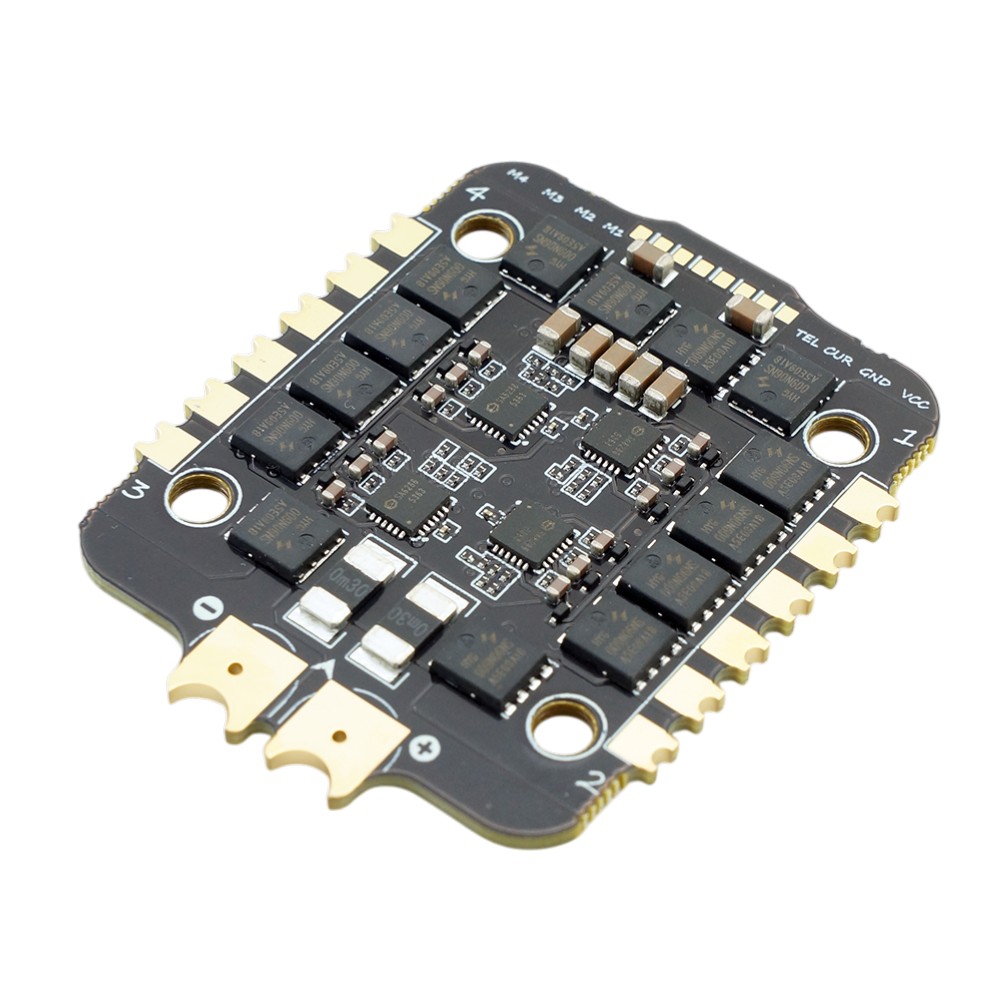 BrotherHobby Returner V1 is a powerful ESC suitable for 5" freestyle and racing drones as well as 7-10" long range drones. The ESC uses modern firmware AM32. It can handle currents up to 70A and can be powered by 4-8S LiPo batteries. The ESC is equipped with a protective TVS diode and a current sensor.