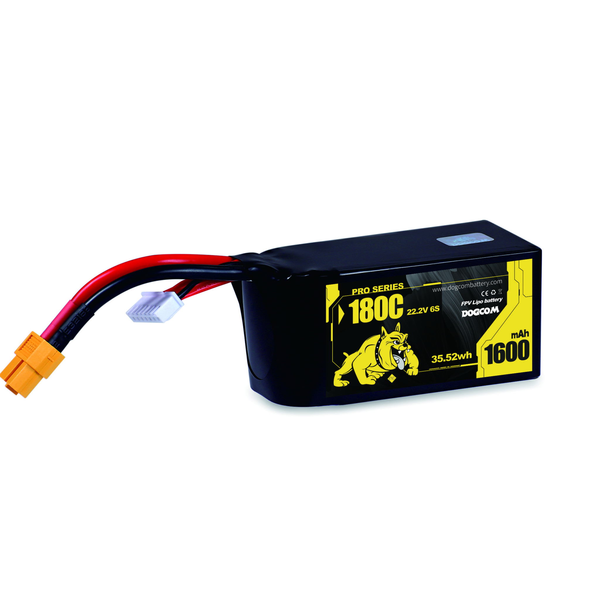Dogcom is a relatively young brand of high-performance FPV drone batteries that aims to offer some of the best packs on the market. Dogcom 1600mAh 6S is a LiPo battery with an XT60 connector, featuring high discharge capability and low weight, making it ideal for powerful 5" racing and freestyle drones.