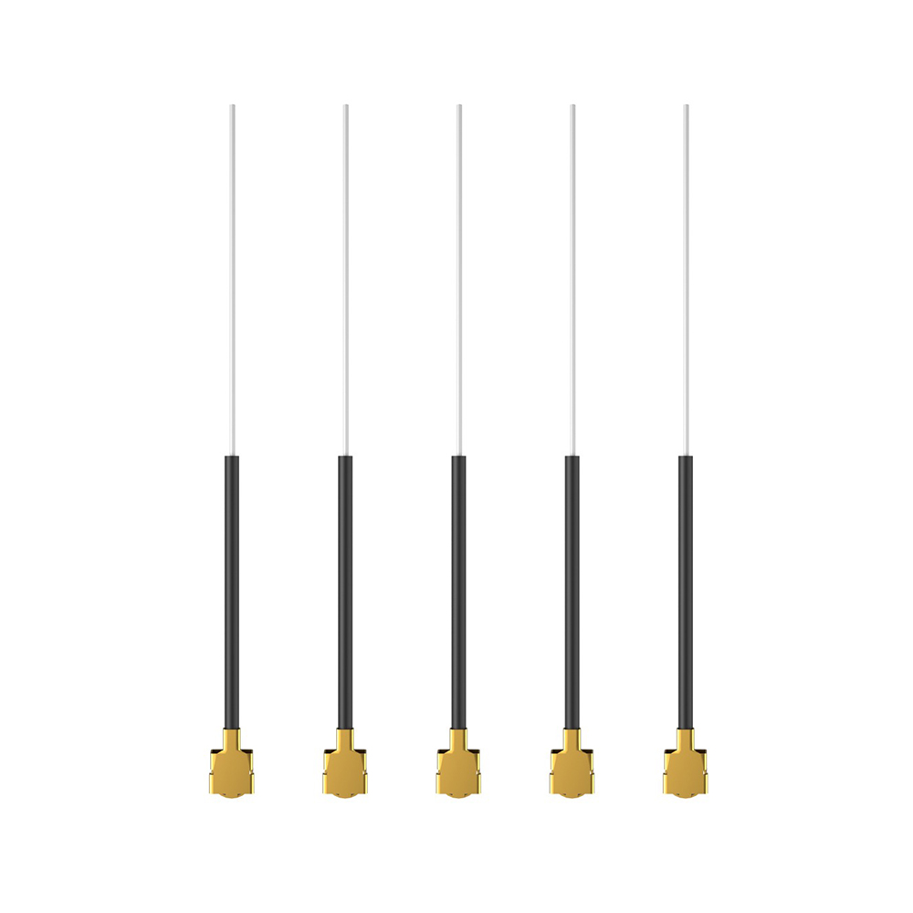 Set of 5 lightweight antennas for the frequency 2.4 GHz with IPEX1 connector. The antennas are suitable for use with ELRS receivers. With a total length of 58mm and a weight of only 0.16 grams, they are especially ideal for Tinywhoops and other small drones where weight is critical or there is no space for a conventional Immortal T antenna.