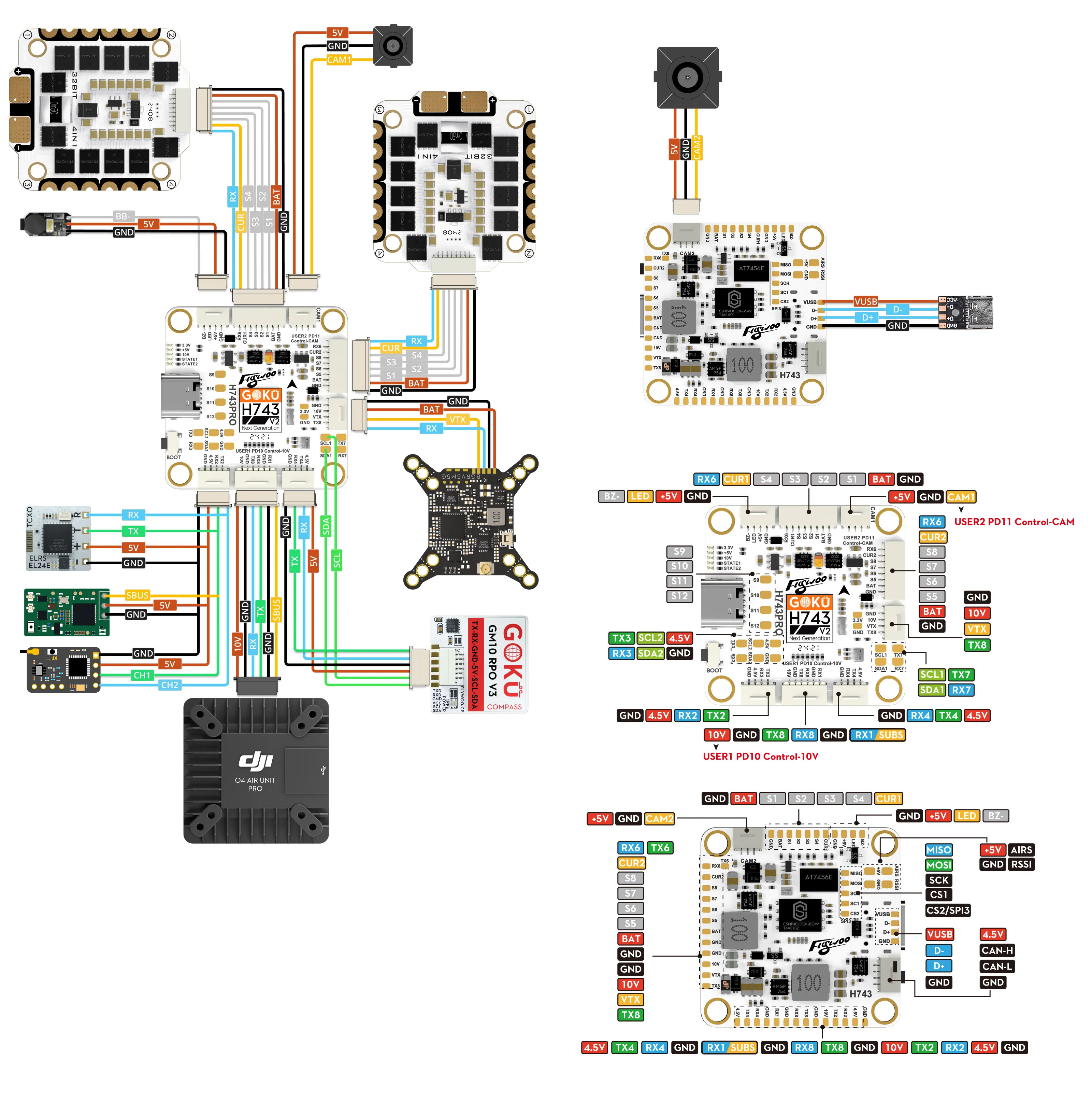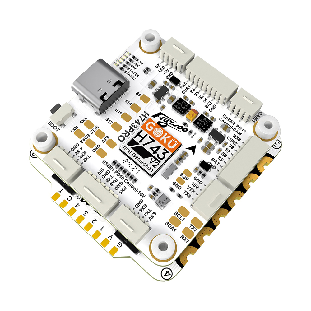 Flywoo GOKU H743 Pro + 55A AM32 is a combination of a flight controller with ESCs suitable for 5" FPV drones and 7" long-range drones powered by 3-6S LiPo batteries.