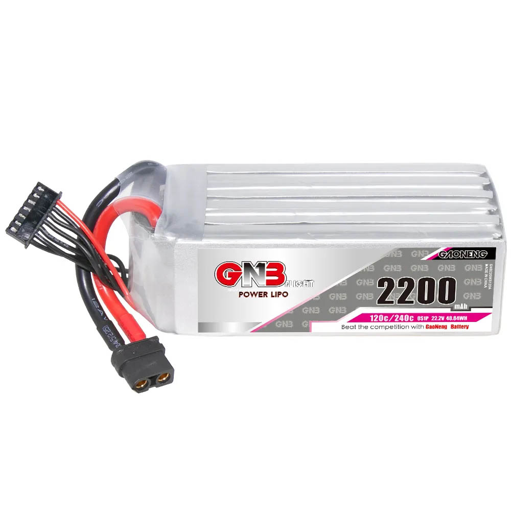 GNB 2200mAh 6S 120C is a powerful LiPo battery suitable for long-range drones and RC aircraft models. The battery is equipped with an XT60 connector.