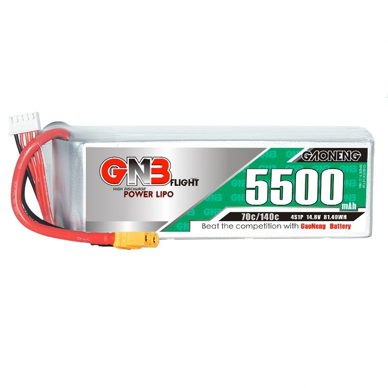 GNB 5500mAh 4S 70C is a larger battery mainly suitable for 7" long-range drones and RC aircraft models.
