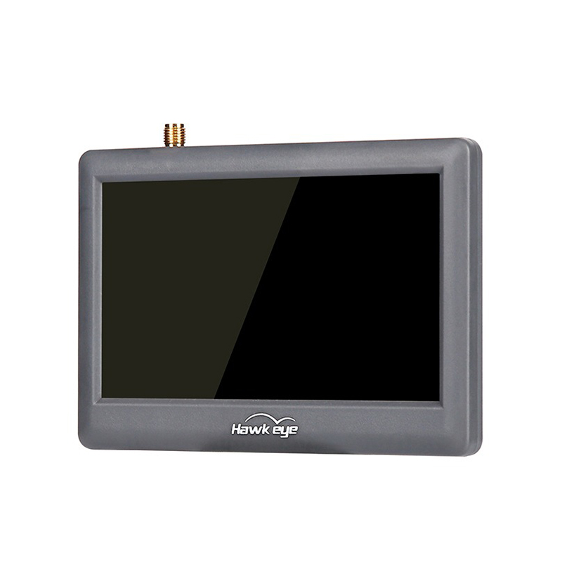 Hawkeye Little Pilot School is a compact 4.3" FPV monitor with an integrated 5.8GHz analog video receiver. The monitor aims for a low price and is suitable for friends or spectators who also want to see how you fly. It is also a practical helper in the workshop. The display has easy operation with three buttons and the option for automatic channel search. The display resolution is 480×272 px, uses LED backlighting, and has a brightness of 500 cd/m². The aspect ratio is 16:9 and supports both PAL and NTSC standards. The integrated receiver supports 48 channels in the 5.8 GHz band (A, B, C, D, E, F). The antenna connects via an RP-SMA connector.
