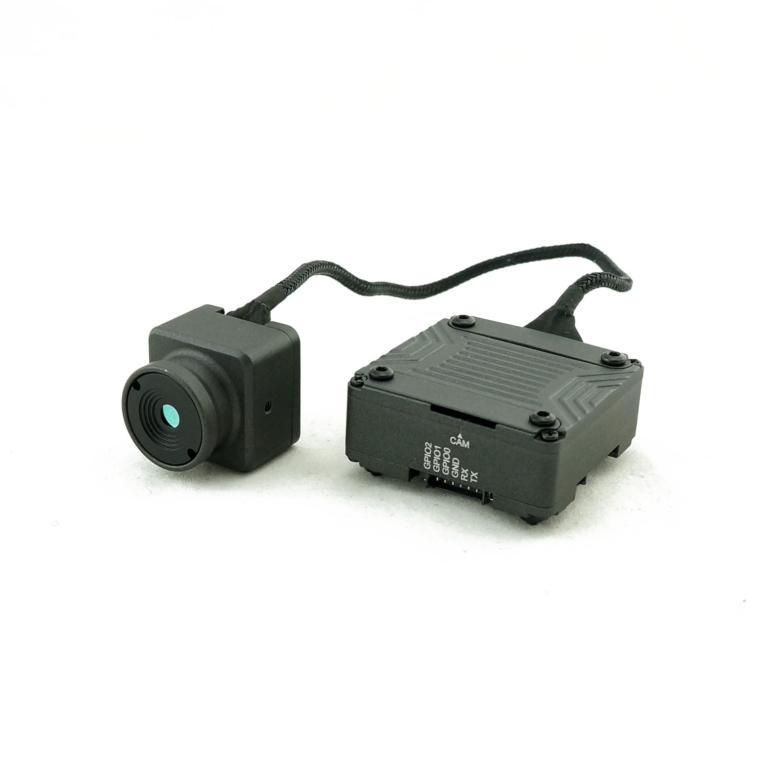 The camera has a width of 19.5 mm and M2 threads on the sides, making it compatible with mounts for standard analog cameras of Micro size. The camera is connected to the AI box via MIPI cable.