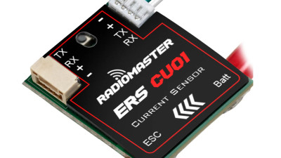 RadioMaster ERS-CU01 is a compact current and voltage sensor designed for ExpressLRS receivers. The sensor is primarily intended for PWM ELRS receivers used in models of aircraft without a flight controller. The sensor connects via UART interface and communicates using the CRSF protocol. It is compatible with Radiomaster receivers ER6, ER8, ER8G, and ER8GV as well as other ELRS receivers that have an available UART. The sensor has UART input and output, allowing multiple sensors to be daisy-chained.
