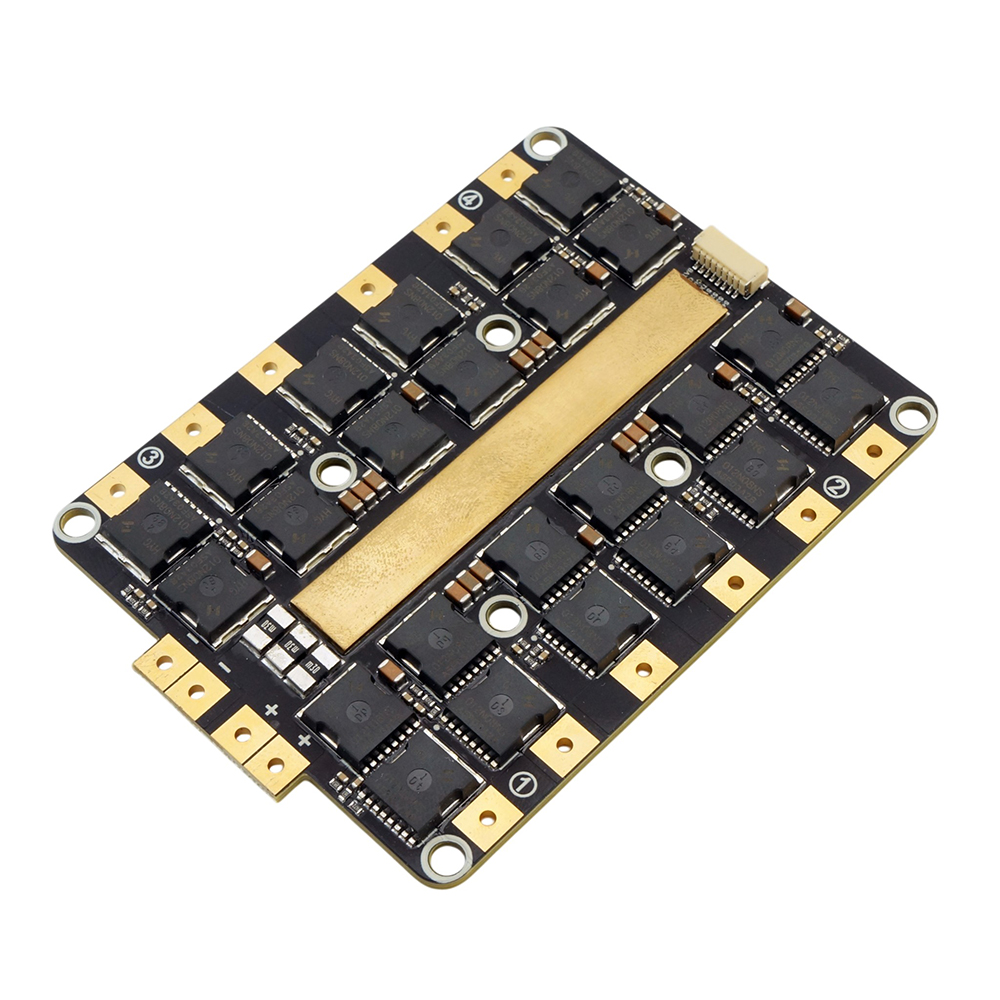 Skystars F120 is a very powerful controller suitable primarily for 15-20″ drones. The controller can handle a current of up to 120A and power up to 12S Lipo batteries. It uses 32-bit firmware AM32 and is equipped with a current sensor. The package includes two large 1800uF 63V capacitors and a PCB for easy installation. The controller has a standard mounting pattern of 30.5x30.5mm M3 (with softmount) and external holes for installation with a spacing of 86x66mm. The outer dimensions of the controller are 72x99mm, make sure there is enough space in the frame. The weight of the controller is approx. 92 grams.