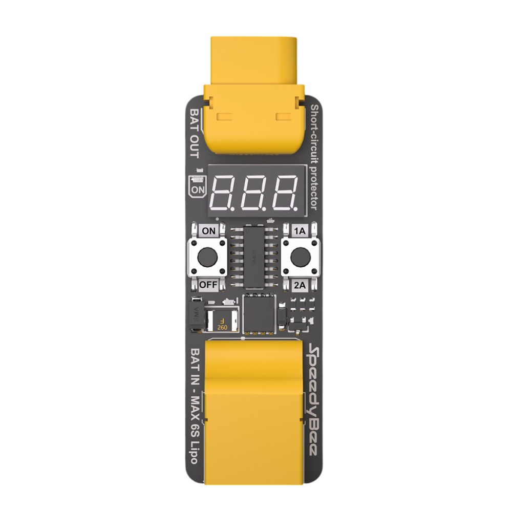 Speedybee Smart Power Tester is an intelligent smoke stopper. The function of the smoke stopper is to interrupt the voltage supply in case of a short circuit (or high current consumption) and thus protect the electronics. It is mainly used for testing components or when first connecting the battery to a newly built drone. If you've made a mistake during soldering and there is a short circuit in the electronics, the smoke stopper will disconnect the power supply and ideally prevent component burnout. Unlike simple smoke stoppers (which can be a car bulb, for example), the Speedybee Smart Power Tester does not limit maximum current but completely shuts off the input voltage.