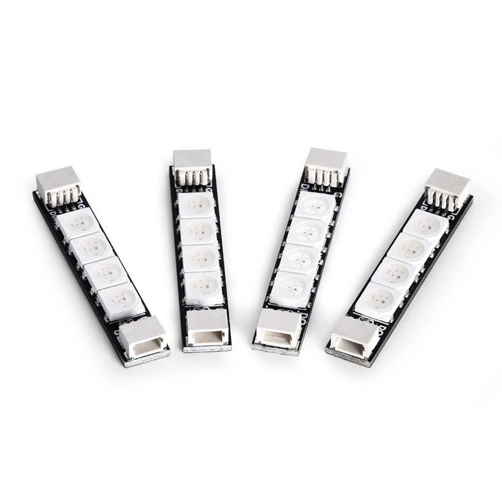 Set of 4 LED strips designed for mounting on drone arms. The LED strips are programmable, and each LED can be individually configured through the drone’s flight controller. The strips are equipped with a connector for easy plug-and-play installation without soldering. For those who prefer soldering, solder pads are also available. Each strip operates on 5V power and includes 4 LEDs of the 5050 size.
